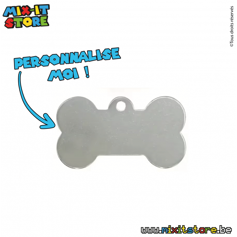 N'oubliez pas de sauvegarder votre personnalisation pour pouvoir l'ajouter au panierMédaillon pour chien métallique personnalisable en forme d’os, idéal pour identifier votre compagnon avec style et élégance.